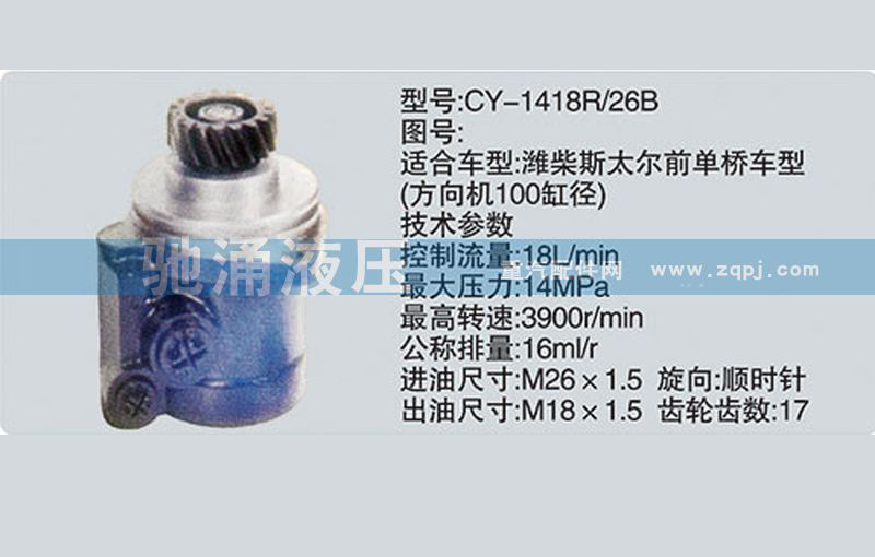 濟南馳涌貿易有限公司供應濰柴系列轉向泵CY-1418R/26B轉向助力泵、轉向助力葉片泵【馳涌液壓】【CY-1418R/26B】,價格0.00元/件,下面是詳細參數及照片。